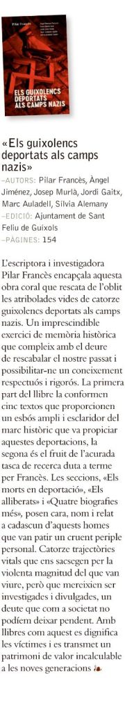 Al principi del llibre trobareu una introducció sobre l’abans de la guerra escrita per Àngel Jiménez; llegireu el periple dels republicans a l’exili per Jordi Gaitx i l’horror que patiren dins dels camps i l’horror de les xifres escrit per Josep Murlà. I al començament, un emotiu pròleg de Marc Auladell on ens explica quin fou el detonant per començar a investigar els deportats de casa nostra.